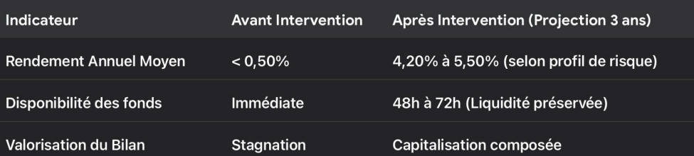 • Perte d’opportunité : Un rendement quasi nul sur les comptes à terme classiques. À long terme, cela représentait une perte de création de valeur significative.