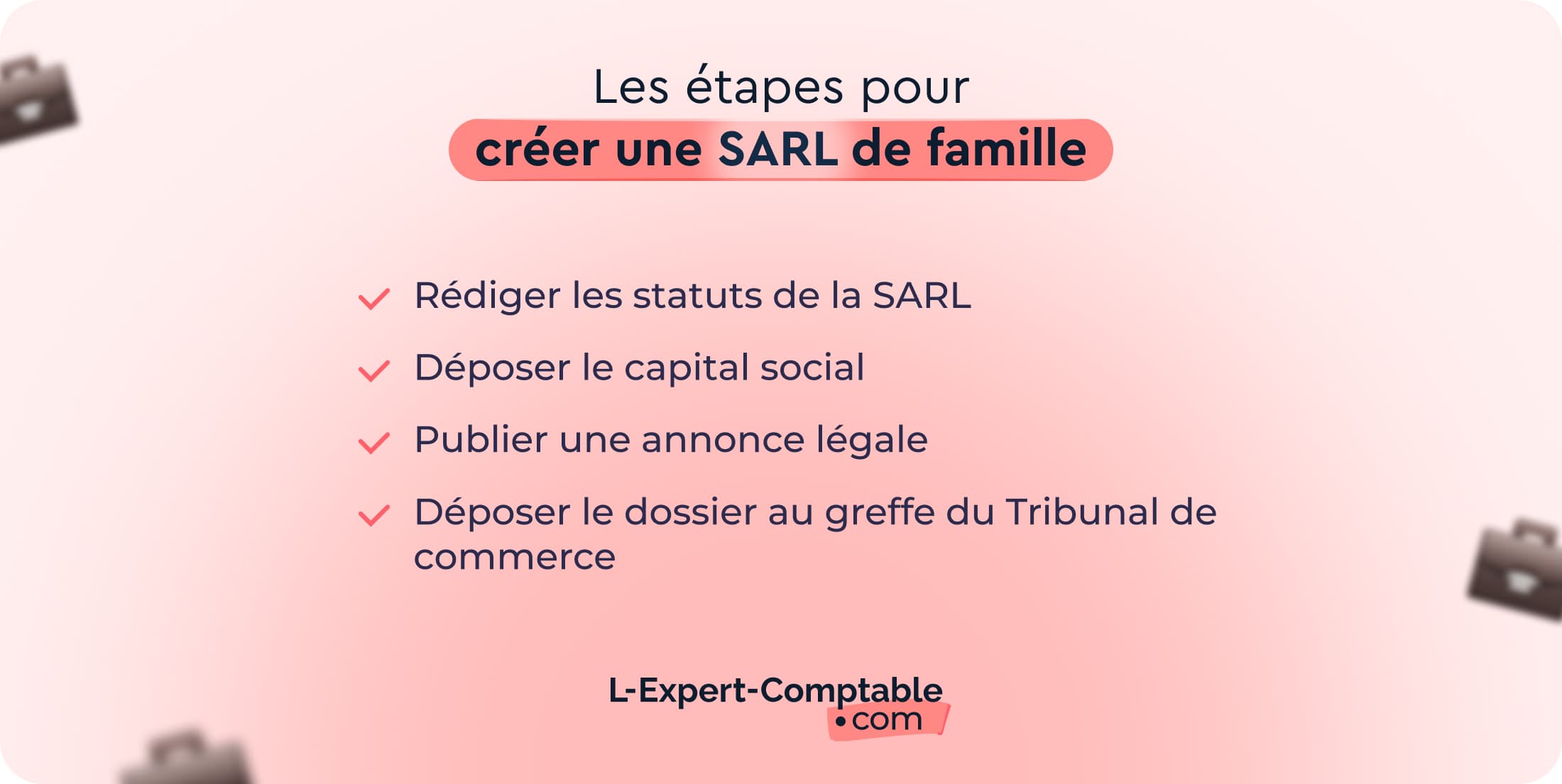 Créer une SARL de famille suit le même processus juridique que de constituer une autre forme sociétale : rédiger les statuts, déposer le capital social, publier l’annonce légale dans un JAL et réaliser la demande d’immatriculation sur le site du guichet unique de l’INPI.